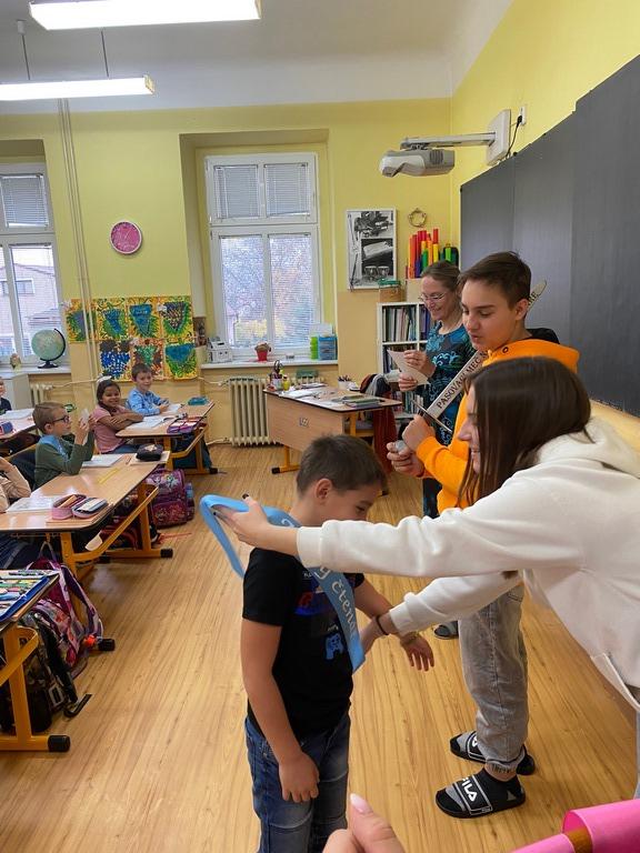 Na škole máme letitou tradici, kdy v březnu, měsíci věnovanému právě knize, pasujeme prvňáčky na Malé čtenáře. Bohužel, poslední dva roky jsme díky nepříjemné covidové situaci tuto akci museli přesunout až do druhého ročníku.