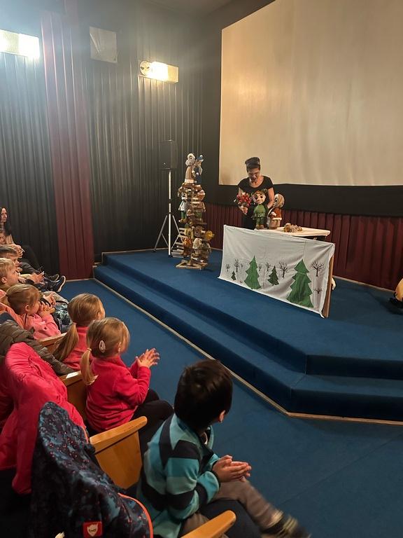 Děti z MŠ a žáci 1. - 3. třídy ZŠ se dne 29. 2. vydali na obecní úřad, aby si užili loutkovou pohádku "O dvanácti měsíčkách".