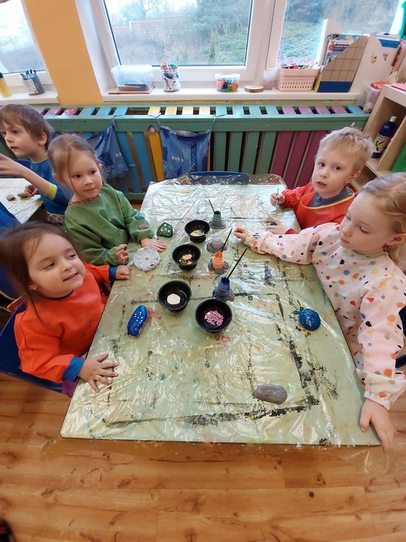 Děti si malovaly a zdobily kamínky, které si druhý den odnesly domů. Aby je společně s rodiči rozmístili na místa jimi určená.