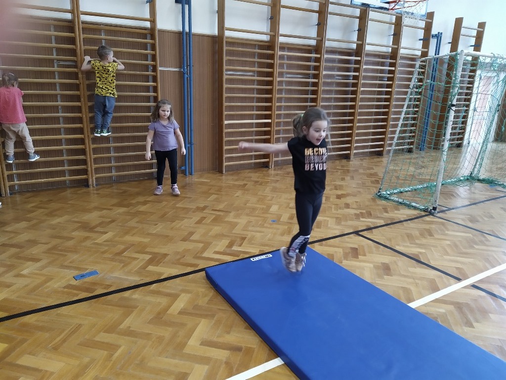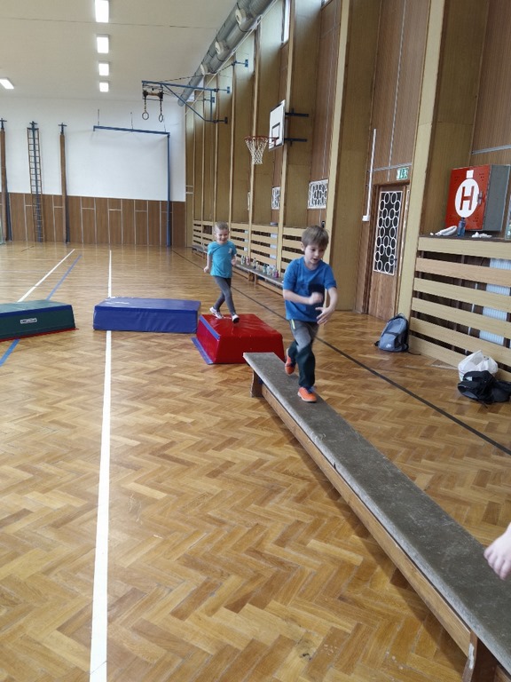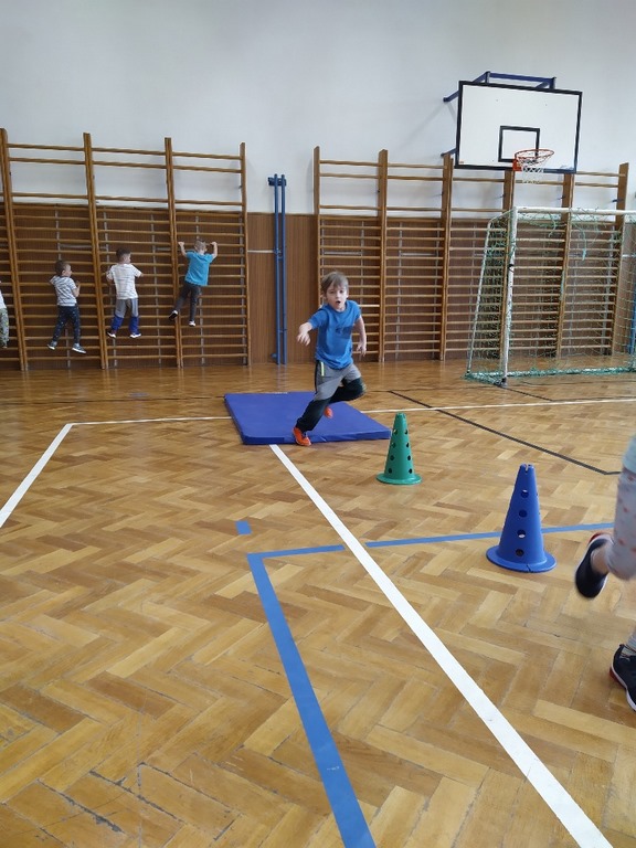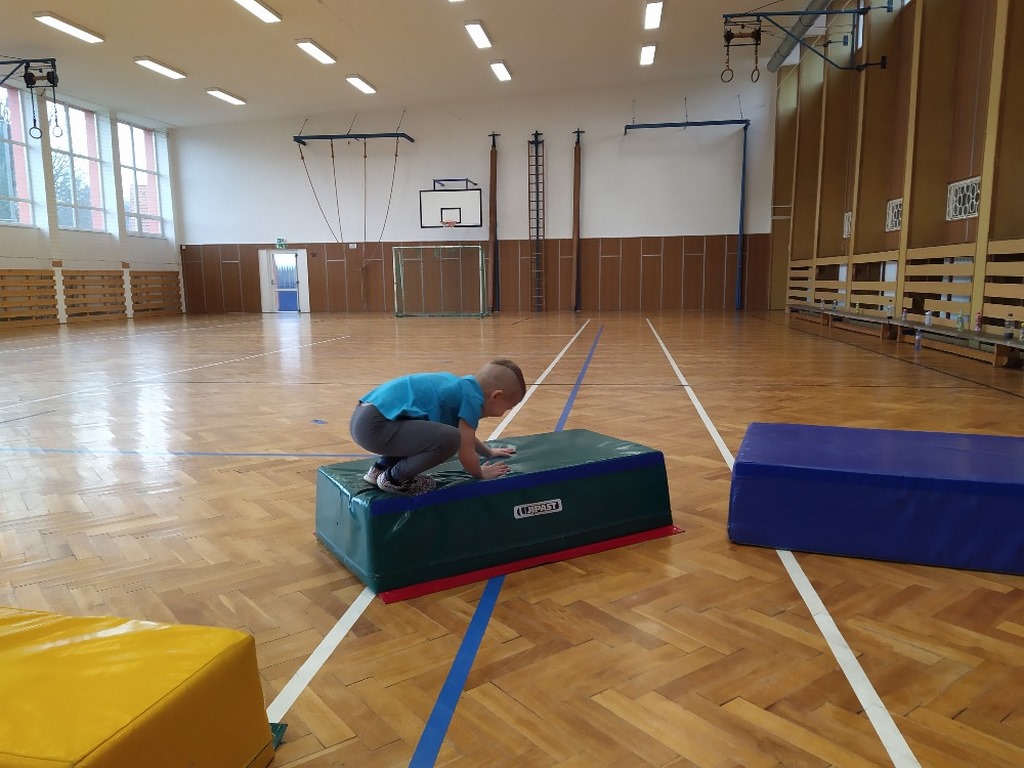 Velký tělocvik u nás probíhá v pátek. Starší děti od Myšáků a Ježčat docházejí společně do radonické sportovní haly, kde zdokonalují své pohybové dovednosti. Mladší děti z obou tříd se učí pohybu v tělocvičně u Myšáků.